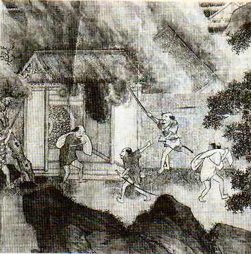 With the end of the Tokugawa-bakufu and the abolition of the han system in 1871, also Teruyoshi had as a craftsman of a fief to leave his residence so we can imagine that he cherished the strong wish to return to his hime village of Kawai. But when his father started to work for the Kawagoe fief in Tenpô eight (1837), his older stepbrother Kamekichirô Eiji – who had been left in charge of the family in Kawai – entered the service of the fief and moved to Maebashi shortly later. So the household was dissolved and nothing was left in Kawai where he could have returned. After leaving his home village at the age of 15, about 34 years had passed and Teruyoshi was now without a job. There is a request extant from the 14th day of the tenth month Meiji four (1871) where Teruyoshi asks the fief for the permission to move to the grounds of the Jion-ji (慈恩寺) in the village of Itakura (板倉) in the Nawa district (名和). Itakura was namely the neighboring village of Kawai. It is likely that he had some connections to the people of Itakura which go back to the time when the family lived in Kawai. So Teruyoshi eventually restored a row house in front of the Jion-ji and settled there. Fujieda Akihiro (藤枝昭広), one of Teruyoshi´s successors, described that the row house was very old and that they had to borrow the village´s wooden mochi mortar as replacement for the rotten lower part of a pillar. And when at the end of the year the time of mochi making came, the villagers were a little upset that their mortar was „misused“ in the Fujieda house. And Akihiro narrated that the villagers helped the family to lift up the building so that the pillar could be restored and complained jokingly that they fell behind their work schedule because of this. When Teruyoshi came to Itakura, his oldest son Heiji was about ten years old. It is said that Heiji always wore a sword when he played with the other kids. That means the family really didn´t like the idea to give up the samurai status.