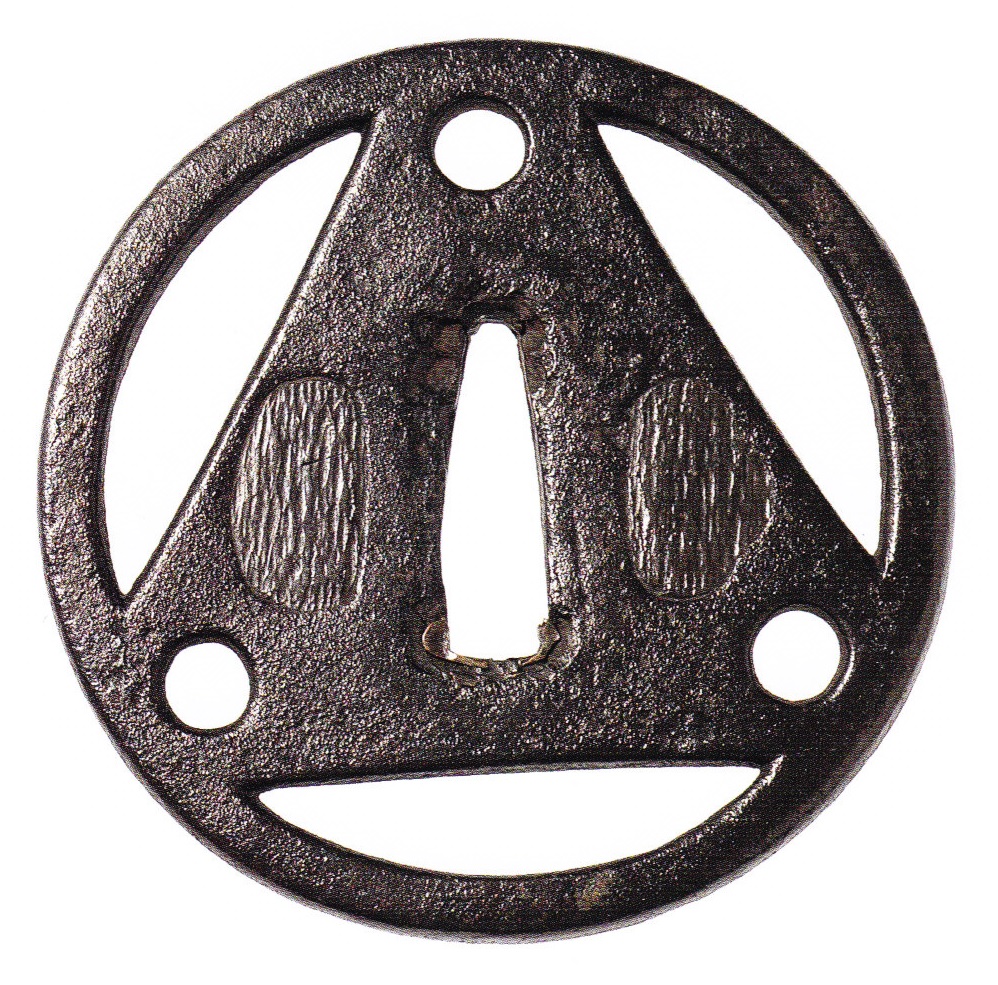 Picture 3: mitsuboshi-sankaku no zu tsuba (三星三角図鐔, three stars in a triangle)