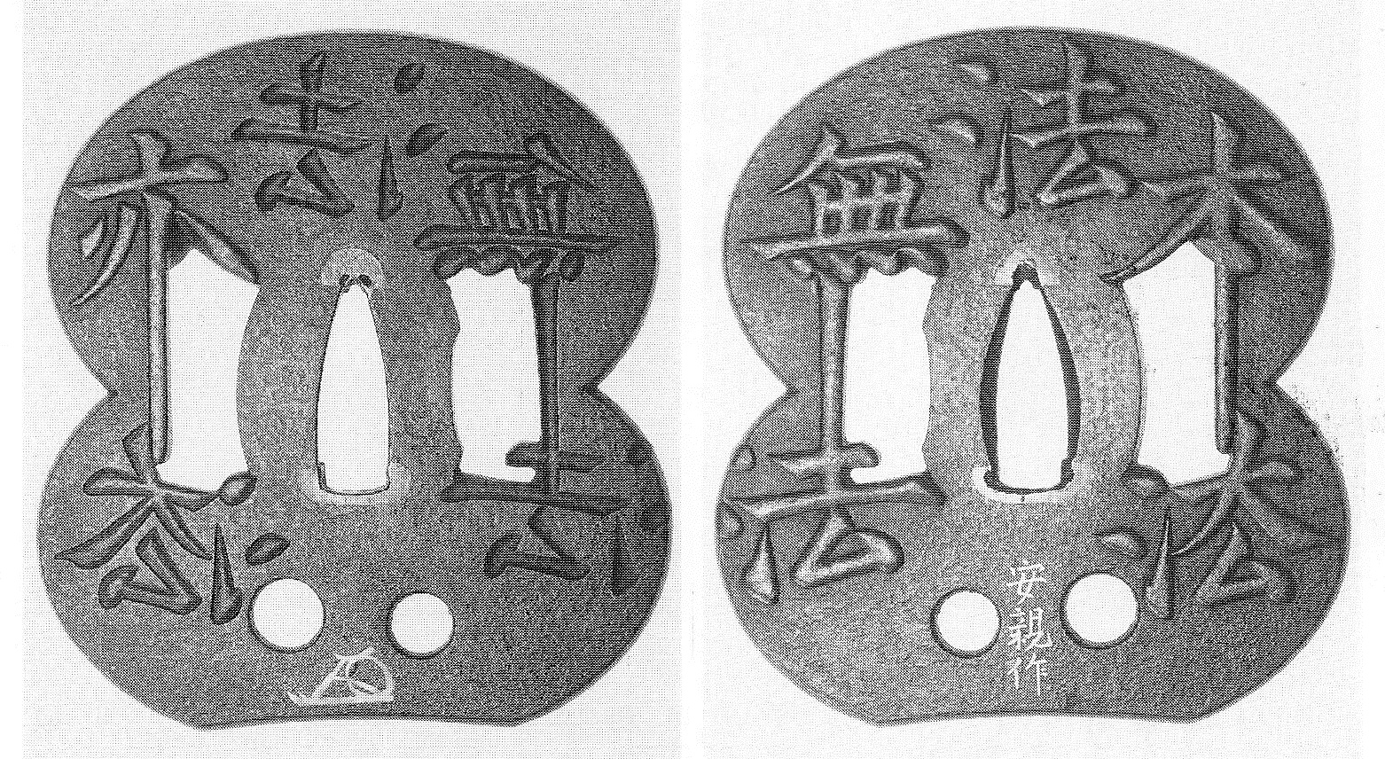According to transmission, Tadatsugu killed with this yari an opponent whi was hiding behind a large water jug (mizukame, 水瓶・水甕), namely by piercing (tôshi, 通し) the entire jug and the person behind. This earned the blade the nickname „Kametôshi“. It is said that it was a hira-sankaku-yari of Heianjô Yoshifusa (平安城吉房) with a nagasa of 21,2 cm but the whereabouts of the famous piece are unknown. But the yari must had been quite famous as there were several utsushimono made in the Edo period which all mention the provenance in the signature, namely in the way: „Mo Sakai Saemon no Jô Kametôshi-yari“ (模酒井左衛門尉瓶通槍), „made modelled on (mo, 模) the Kametôshi-yari of Sakai Saemon no Jô.“ Some of these copies are still in the possession of the Sakai family.