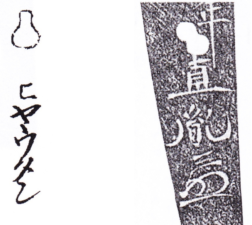 The name of the mekugi-ana in picture eight is again more clear, namely „hyôtan“ (ヒヤウタン, „bottlegourd“). Such a hole is quite often found and the result of two differently sized mekugi-ana opened so close that their merge into each other. The picture on the right shows a hyôtan-mekugi-ana on a wakizashi of Taikei Naotane (大慶直胤).