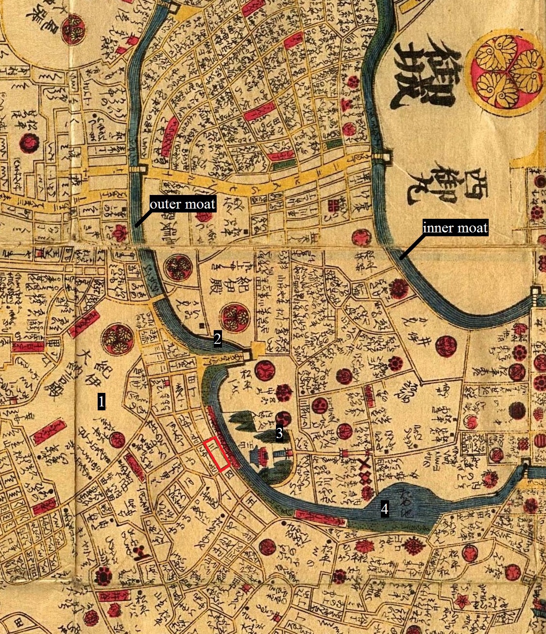 Immediately noticeable is that the Kanchi´in-bon mei-zukushi quotes Kanehira (包平) with the characters (兼平) and that it uses the character (泰) for “Hata” (秦) (more on this Hata later). Then it reads that he was a resident of Kawachi province and that he made the futokoro-tachi (ふところ太刀) of Hôshô (ほうしやう). Futokoro-tachi means in this context “beloved sword” and must not be confused with the small and hidden futokorogatana (懐刀). And “Hôshô” is the Sino-Japanese reading of the characters for “Yasumasa” (保昌) and refers to the mid Heian noble and poet Fujiwara no Yasumasa (藤原保昌, 958-1036). Then we read that this beloved sword of Hôshô or Yasumasa respectively came eventually in the possession of the abdicated emperor Gotoba (後鳥羽院, 1183-1198), although it is possible that actually the abdicated emperor Toba (鳥羽院, 1103-1156) was meant, who nicknamed it “Kama no ha-kiri” (釜歯切). Kama no ha is a pot with an extra wide rim so it seems that the sword cut through such a thing. Then we learn that the sword was owned by the Udaishô family (うたいしやうけ). “Udaishô” or “Udaishôgun” (右大将軍) was another name of Minamoto no Yoritomo (源頼朝, 1147-1199). Each time Yoritomo was spending time on his hunting grounds, he put the sword in a special box (hako, 箱) and stored it away and so it got the nickname “Hakomaru” (箱丸). Later the sword was owned by lord Saimyôji (さいみやうじ), i.e. Hôjô Tokiyori (北条時頼, 1227-1263) who ordered the smith Tôhyôe no Jô Kuniyoshi (とうひょうえのぜぶ國吉) to make copy of the sword. “Saimyôji” (最明寺) is the posthumous Buddhist name of Tokiyori and with the smith, Awataguchi Kuniyoshi is meant. So the original was still called futokoro-tachi and the copy futokoro-tsurugi (ふところつるぎ).
