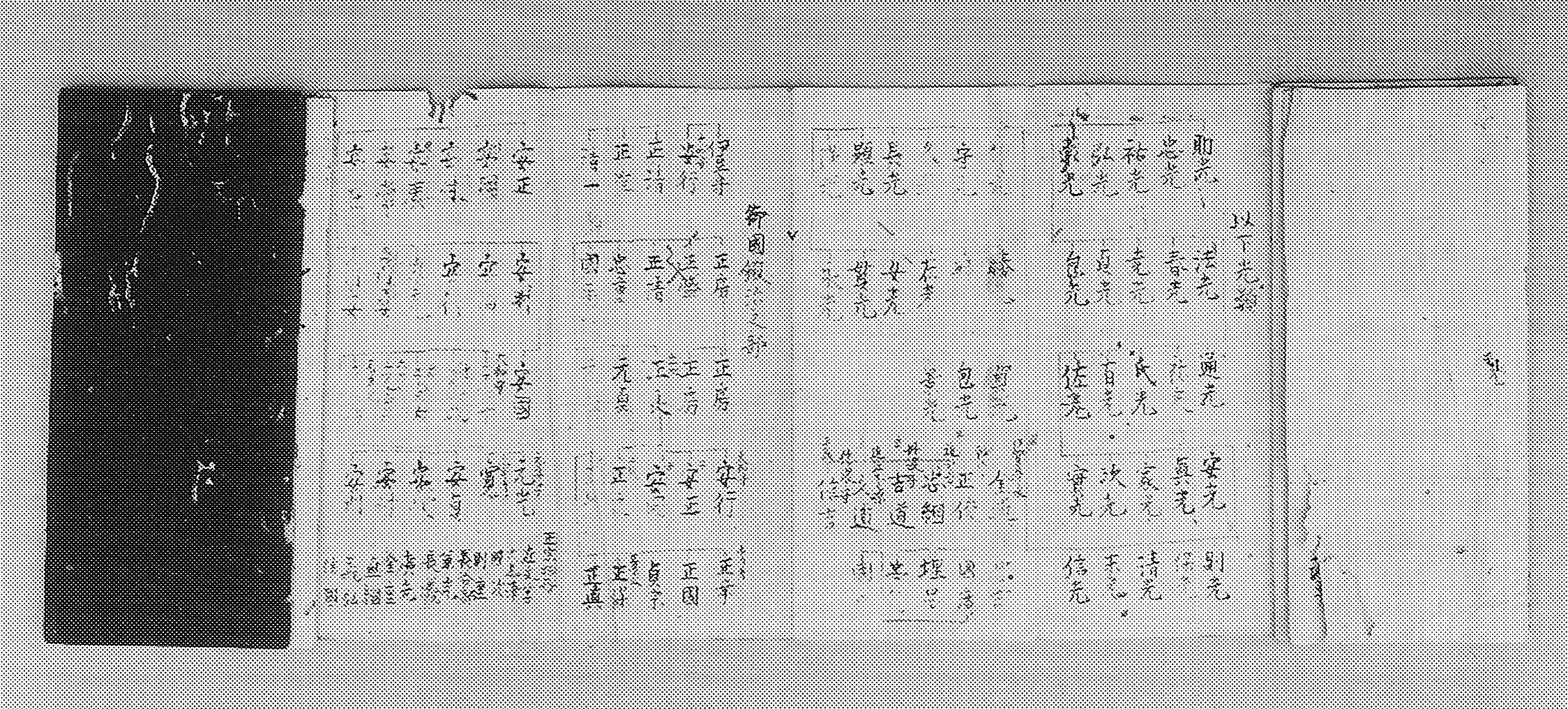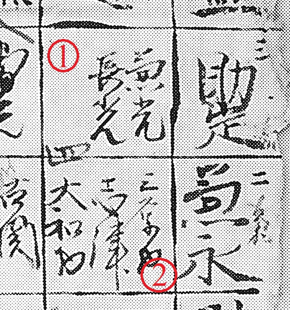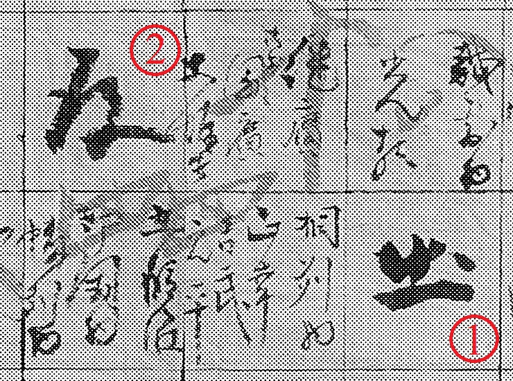 Picture 5: Detail of one of the lists. Box 1 shows the character da(su) and box 2 the character son(jiru).