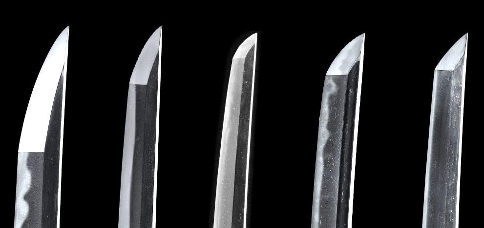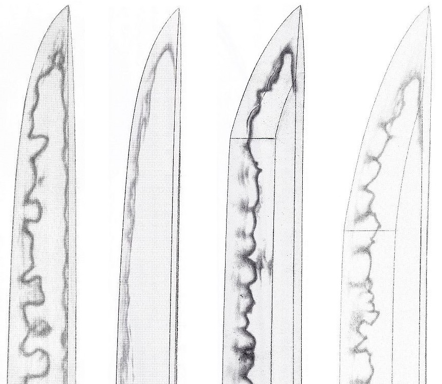 From left to right: hisaki-agaru (Ko-Bizen) hisaki-agaru (Kagemitsu), hisaki-sagaru (Chôgi) hisaku-sagaru (Aoe)