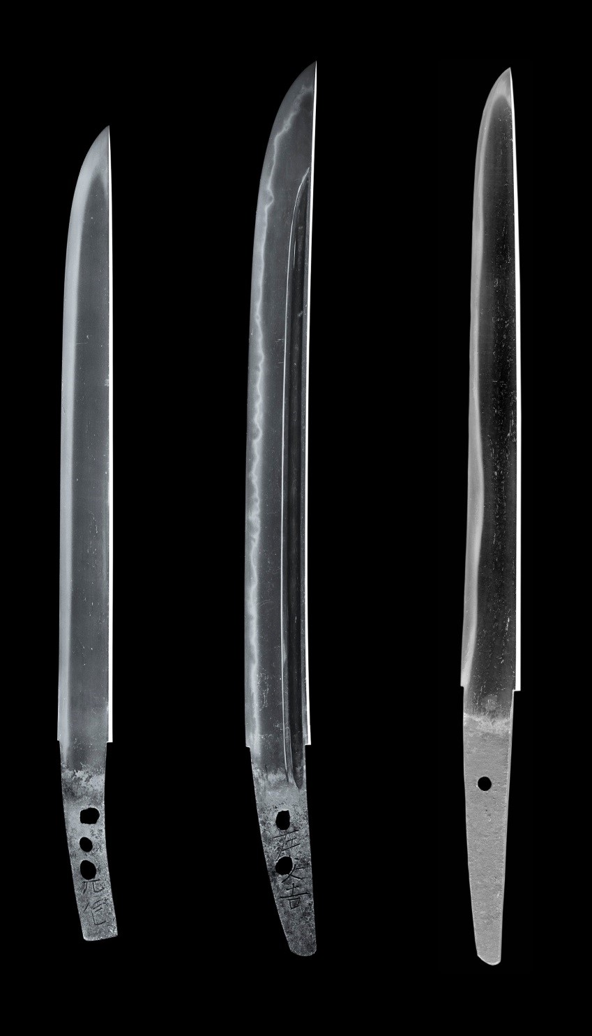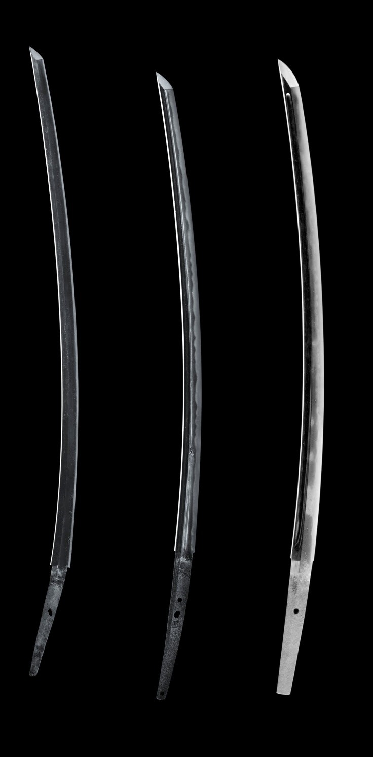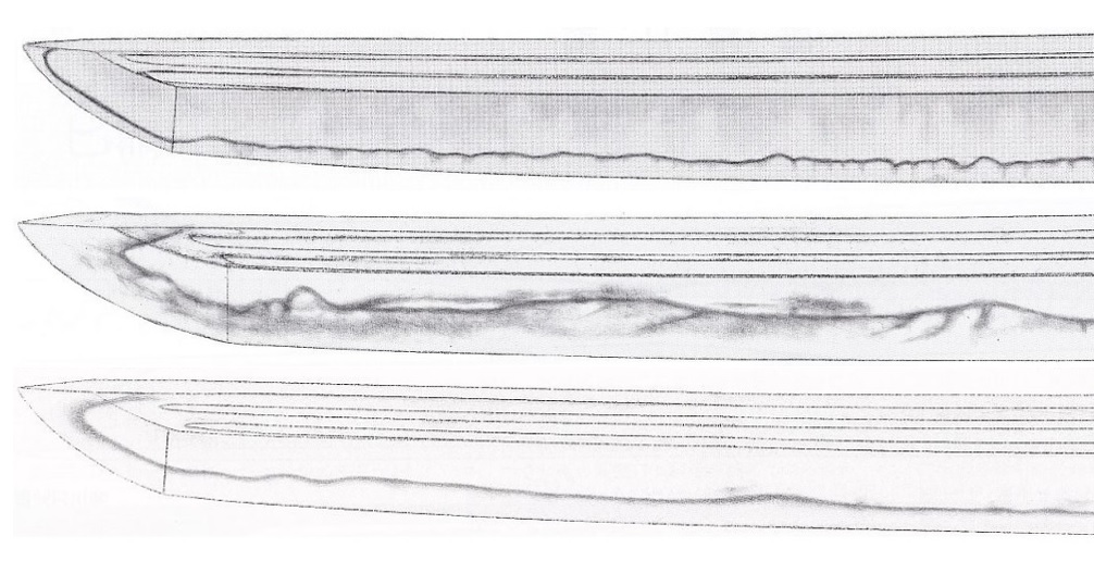 Examples of futasuji-hi, from top to bottom: Nagamitsu, Aoe, Fujishima Tomoshige