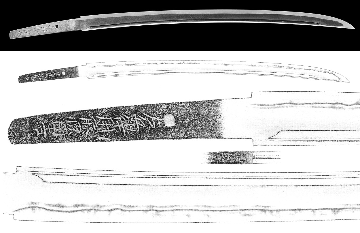 Picture 7: jûyô-bunkazai, uchigatana, mei “Sahyôe no Jô Fujiwara Kuniyoshi” (左兵衛尉藤原国吉), nagasa 54.0 cm, sori 1.6 cm, hira-zukuri, mitsu-mune