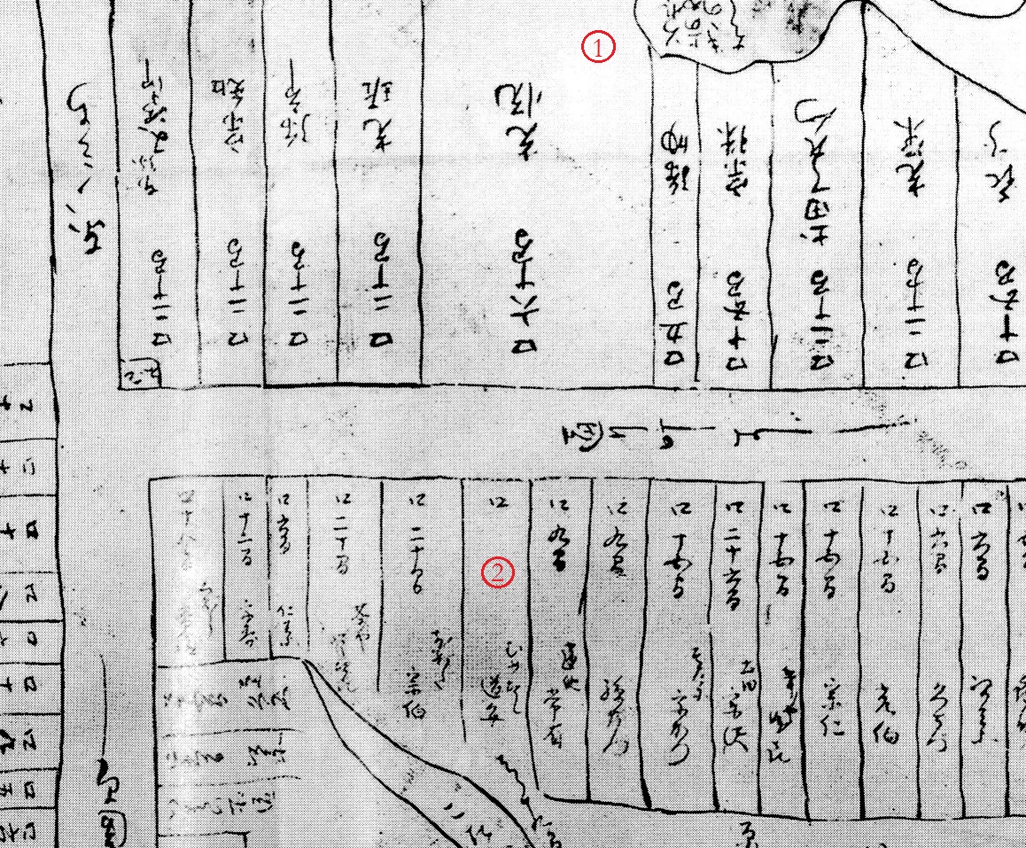 Anyway, I want to introduce an interesting theory that follows the Kuniyoshi student-approach and that is connected to a highlight of Yoshimitsu, and that is his signature style. This theory says that Yoshimitsu came originally from Echizen province where he lived in the vicinity of the Shiisaki-jinja (椎前神社・志比前神社, present-day city of Tsuruga, Fukui Prefecture). Now Tsuruga is not that far away from the old capital, i.e. about 100 km following the Hokurikudô, and the Hokurikudô was a much frequented route as in Heian and early Kamakura times, Tsuruga had been (apart from Hakata on Kyûshû) the main hub for trade with Song China. The theory also says that he studied calligraphy of the Guzei’in-ryû (弘誓院流) in the capital, a style of shodô that has been established by court noble Kujô Noriie (九条教家, 1194-1255). Taking that into consideration, it is likely that Yoshimitsu has belonged to a rather high-ranking local Tsuruga family and that he moved in higher circles when visiting Kyôto. So maybe he came for something else but had a fondness for swords and was thus introduced to the then most renowned lineage of swordsmiths, the Awataguchi, where he started to study with master Kuniyoshi. I mean, we are talking here about the most prestigious masters of that time who only took orders from the wealthiest clientele, so following the Echizen approach, it is unlikely that for example a peasant boy packed his backback, marched down to Kyôto, and knocked at the door of Kuniyoshi to become his apprentice. Stories like that are more like Edo-era romanticism. As mentioned, this is just one of the numerous theories on the background of Yoshimitsu but reason why I deal with it that persistently is his signature style of which experts agree that the elegant style is not a coincidende and that he must had a decent knowledge of the aesthetics of calligraphy. In other words, Yoshimitsu’s signatures are not just of the “elegant because of the archaic, antique feel” category, like the mei of Heian and early Kamakura-era smiths for example, but are well thought out with all elements like curves of strokes and distance of radicals in perfect harmony.