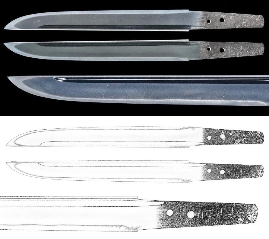 Picture 11: gyobutsu, tantô, meibutsu Hirano-Tôshirô, mei “Yoshimitsu” (吉光), nagasa 30.1 cm, uchizori, hira-zukuri, mitsu-mune