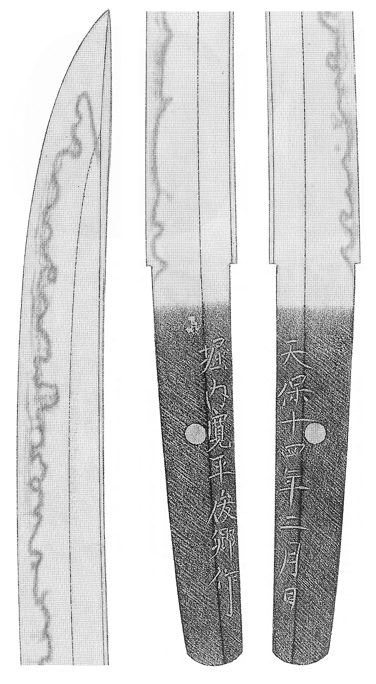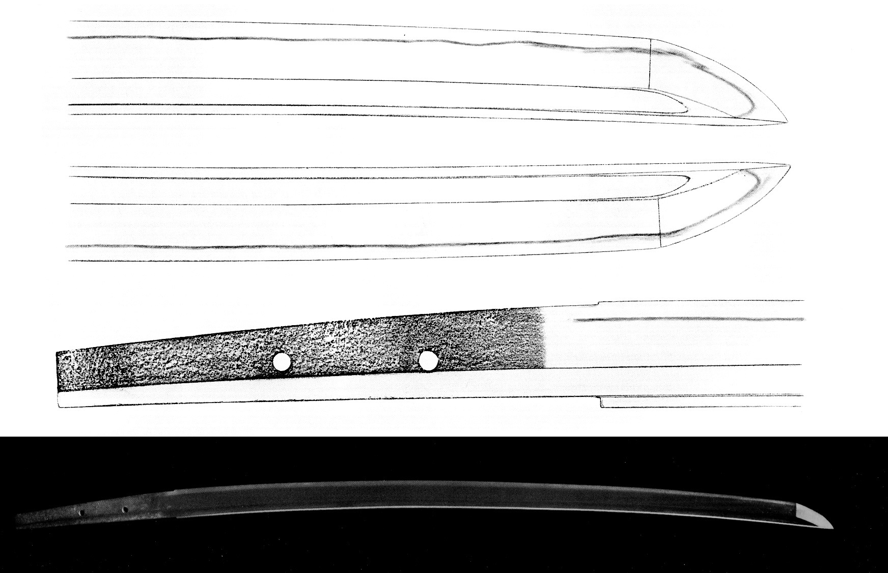 Picture 1: kokuhô, tachi, mei “Rai Kunimitsu – Karyaku ninen nigatsu hi” (来国光 嘉暦二年二月日), nagasa 78.8 cm, sori 3.6 cm, motohaba 3.6 cm, sakihaba 1.9 cm, shinogi-zukuri, iori-mune, preserved in the Tôkyô National Museum