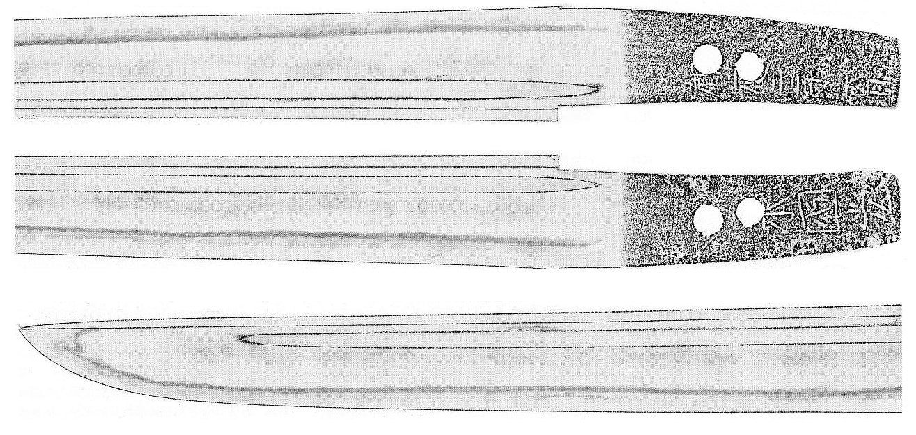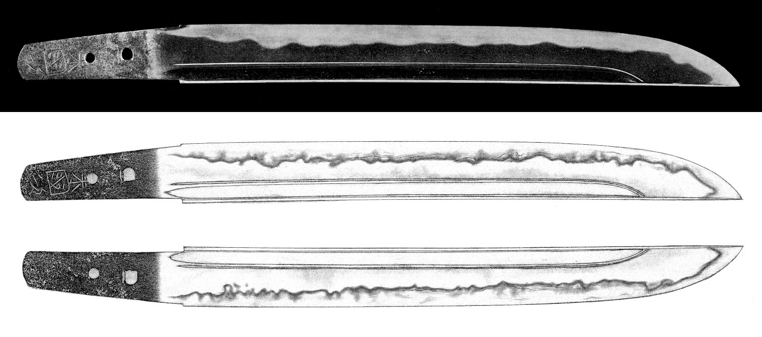 Rai Kunitoshi was succeeded by his son Kunimitsu (国光) who took over an already very much flourishing Rai School. Well, as so often when talking about such relative early smiths, there are several traditions extant, like that he was actually the younger brother, grandson, or mere a student of Kunitoshi but the widely accepted one is that he was straightforward his son. As for his active period, we know date signatures from Karyaku one (嘉暦, 1326) to Kan’ô two (観応, 1351) and the Kôsei Kotô Meikan introduces a dated blade from Shôwa two (正和, 1313). However, we can assume that he was mostly engaged assisting his father at that time, as daimei works from the first two decades of the 14th century show. Rai genealogies, historic documents, and certain blades (and signatures, more on this later) furthermore suggest that there was a second generation Kunimitsu, but we can’t say for sure when the shift of generations took place. The Kotô Meizukushi Taizen says that the first generation Kunimitsu was born in Bun’ei one (文永, 1264) and died Shôkyô four (正慶, 1335) at the age of 72 but odd here is that the Shôkyô era only counted brief two years. Maybe the author mixed up the then partially overlapping and double counting of nengô eras of the Nanbokuchô era. Anyway, the source also says that the second generation was active around Kôei (康永, 1342-1345) and this approach is also followed by several experts, e.g. Satô Kanzan. Tanobe sensei in turn thinks that the differences in workmanship and signature style of the later works dated with Jôwa (貞和, 1345-1350) and Kan´ô (観応, 1350-1352) might just go back to the advanced age of the master, i.e. that there was maybe just one generation Kunimitsu. But when we take into consideration that his greatest masterworks are dated somewhere around Karyaku (嘉暦, 1326-1329) and Gentoku (元徳, 1329-1331) and assume on the basis of that he had achieved full artistic maturity at that time, it really seems as if the blades made 20~25 years later go back to the hand of a successor. So, to recap: I think that Kunimitsu took over the Rai School pretty soon after the third year of Gen’ô (元応, 1321) as this is the last known dated blade of his father who was then already 82 years old. In case he was the biological son of Kunitoshi, he was already a fully trained master smith at the height of his career at the time he became the newly appointed head of the forge (remember, Kunitoshi was born in 1240). Thus he was able to continue without interruption to satisfy the exquisite customer base of Kunitoshi, therefore the masterwork output right after his succession. In other words, there was no “experimental” post-succession phase which gradually leads to artistic maturity, no, Kunimitsu took the reins being already an undisputed Rai grandmaster. He also ranks about equal to his father Kunitoshi when it comes to designations by the Agency of Cultural Affairs and the NBTHK, 26 in terms of the former (3 kokuhô and 23 jûyô-bunkazai), and slightly over 200 (about 180 jûyô and more than 20 tokubetsu-jûyô) in terms of the latter category.