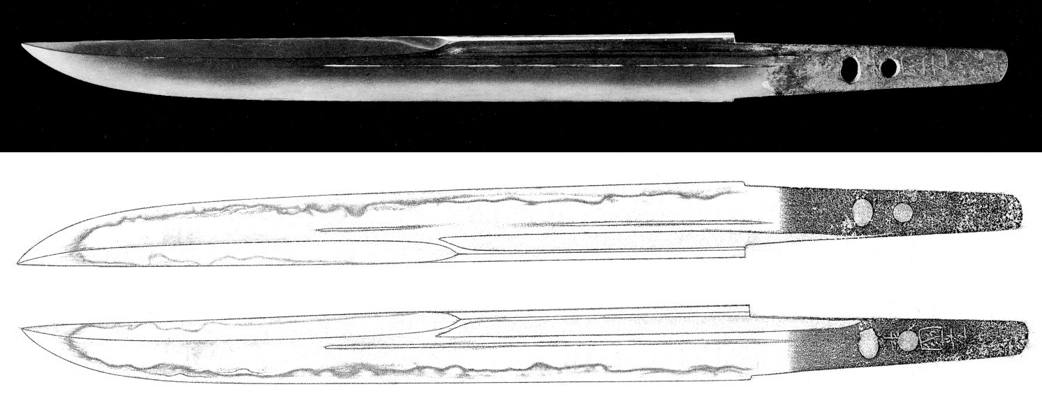 Picture 2: kokuhô, tachi, mei “Rai Kunimitsu” (来国光), nagasa 80.6 cm, sori 3.3 cm, motohaba 3.0 cm, sakihaba 2.2 cm, shinogi-zukuri, iori-mune, preserved in the Kyûshû National Museum