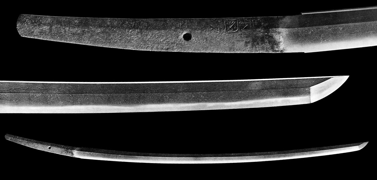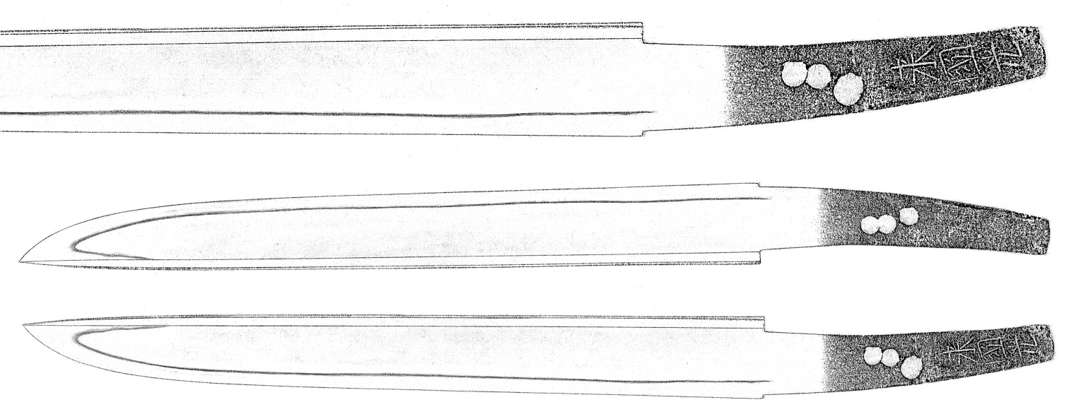 Picture 8: jûyô, tantô, mei “Rai Kunimitsu” (来国光), nagasa 29.15 cm, muzori, motohaba 2.8 cm, hira-zukuri, mitsu-mune, this blade was once presented by shôgun Tokugawa Tsunayoshi (徳川綱吉, 1646-1709) to Iechiyo (家千代, 1707), the second son of his adopted son Ienobu (徳川家宣, 1662-1712) who had died at the age of only two months .