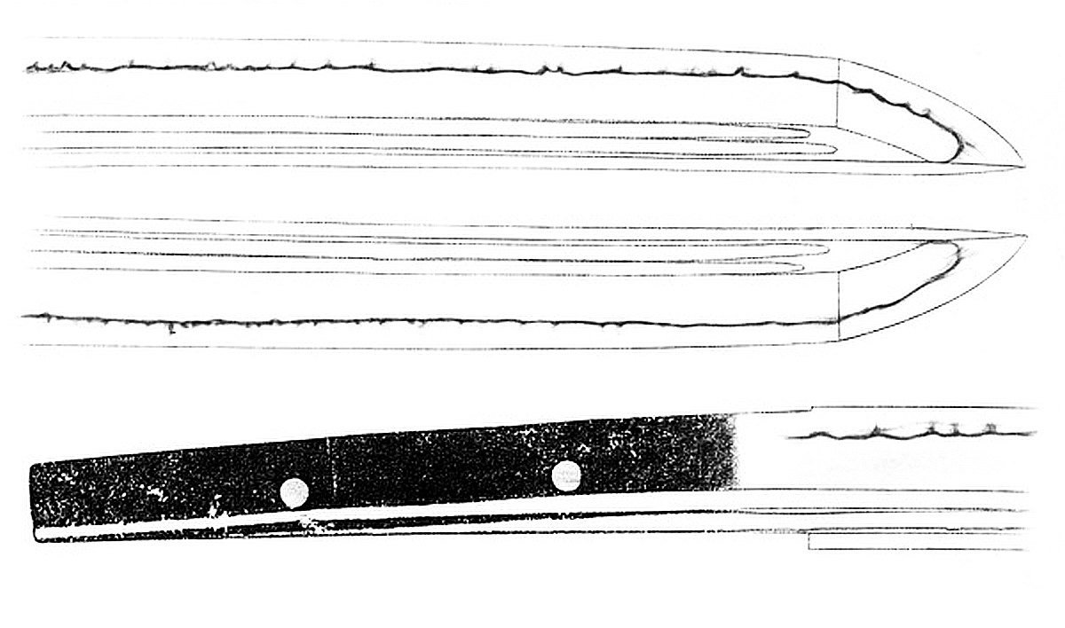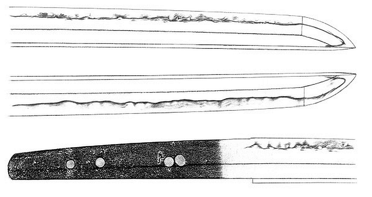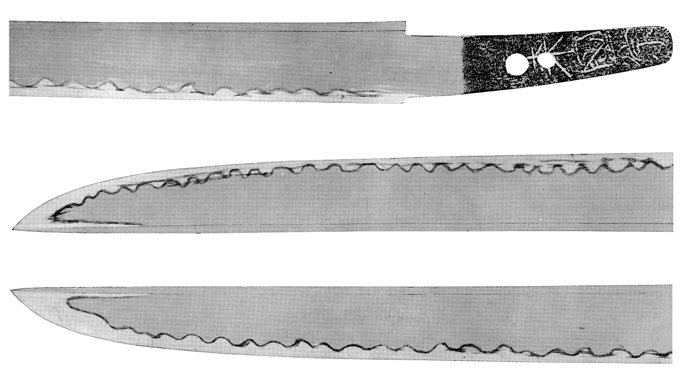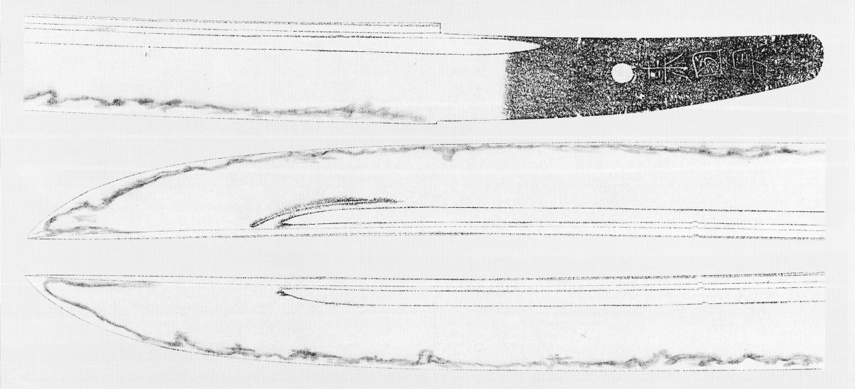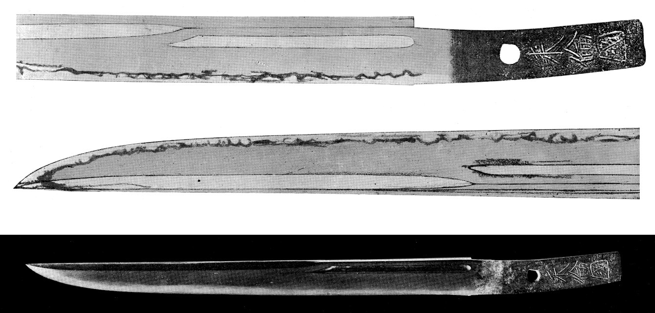 We continue with some of the “below of the radar” Rai smiths. I have mentioned another son of Kunitoshi in the previous chapter, the homonymous Kunitoshi (国歳), but hardly anything is known on this smith and I am not aware of any extant blades of him. The Kotô Meizukushi Taizen however says that he was born in Kenji two (建治, 1276) and that he died in Genkô one (元弘, 1331) at the age of 55. Consulting the traditional genealogies, it seems that the lineage of Rai Kunimitsu did not bring forth many independent smiths. Or in other words, it is safe to assume that he trained many students but who remained working as assistants throughout their entire career and did not have an output of blade on their own account. Well, we find a certain Rai Kuniyoshi (来国吉) listed as son of Kunimitsu who was supposedly active around Ôan (応安, 1368-1375) but no blades of him are known either.