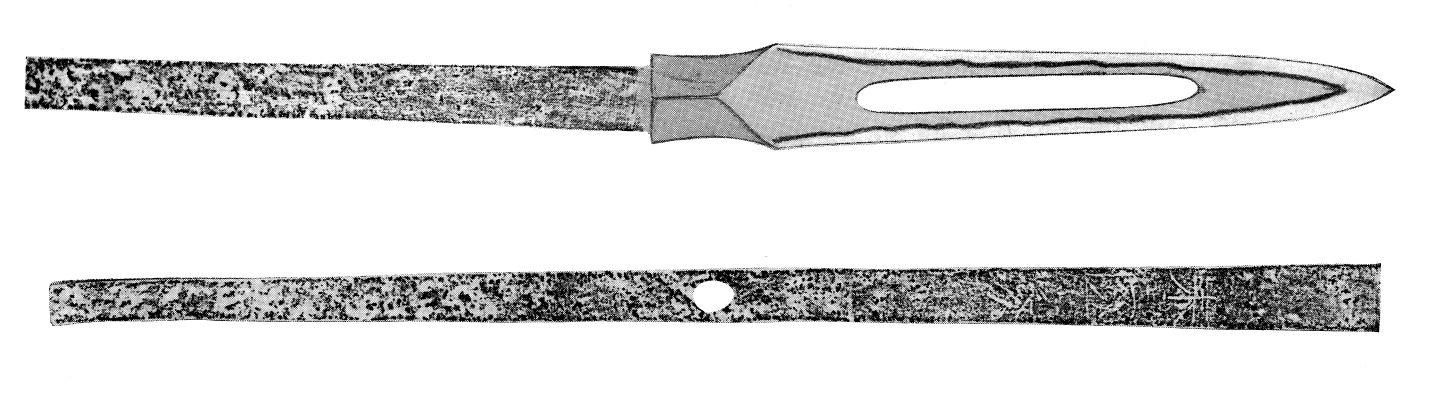 Picture 7: jûyô, tantô, mei “Rai Mitsushige” (来光重), date see text above, nagasa 26.9 cm, uchizori, motohaba 2.65 cm, hira-zukuri, mitsu-mune