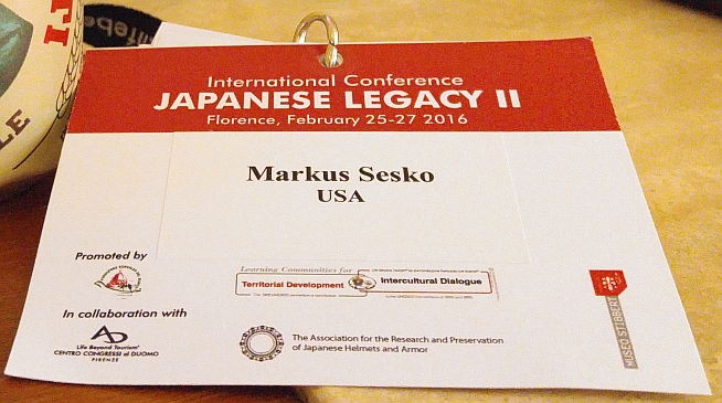 Now in picture 3 we see one of his extant signed yari. It is with a nagasa of 11.0 cm a smallish yari and shows a finely forged ko-itame with plenty of ji-nie and a noticeable tendency to masame. This appearance of much masame is also true for his other yari and goes most likely back to the different forging techniques used for yari (which are for example also evident on ken). The hamon is a slightly undulating suguha-chô in ko-nie-deki.