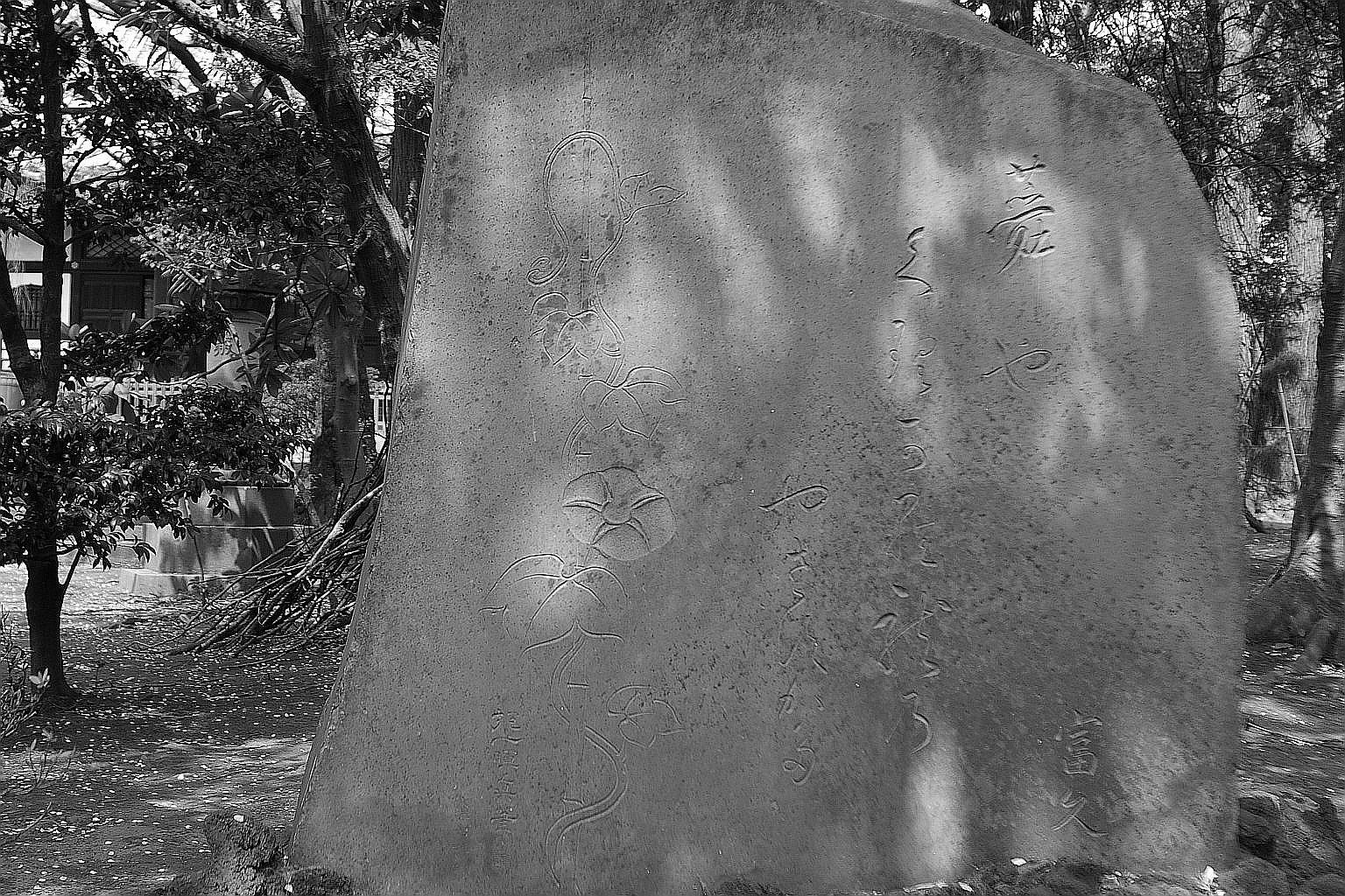And this brings us back to Tomihisa’s career. Renowned soba restaurants like that, or insider’s tips, were places with an endless coming and going of people from all walks of life, from the common servant to the high-ranking bakufu official. We know that Tomihisa became later a relatively well-known figure in the cultural circles of Edo, making acquaintance with several daimyô, and writing poetry himself under the pen names Shôseisai (松盛斎), Kôsôken (貢僧軒), and Senri (仙里), and some suggest that “Tomihisa” was actually one of his gô, what would mean that it should be read “Fuku.” He also became a friend of the famous Rinpa School painter Sakai Hôitsu (酒井抱一, 1761-1829). Incidentally, there is a memorial stone within the grounds of the Zôshigaya Hômyôji (法明) that bears the aforementioned asagao poem of Tomihisa, his name, and a morning glory as once painted by Hôitsu (see picture below). Now with that information, i.e. that the depiction of the morning glory on the memorial stone goes back to Hôitsu, and seeing striking similarities in interpretation, it is very likely that the morning glory on Tomihisa’s famous kozuka bases on a drawing or sketch that he received from his painter friend.