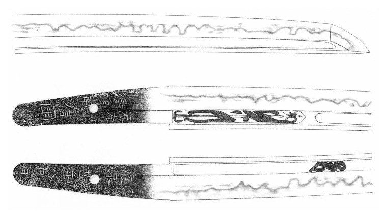 In the following I would like to introduce some works of Minamoto Saemon no Jô and Shikibu no Jô Nobukuni which will be supplemented by Ôei-era Nobukuni works which do not match in terms of signature style with these two masters and who thus might be works of Gyôbu no Jô Nobukuni. But before I want to refer to the workmanship of the Ôei-Nobukuni smiths in general and what distinguishes them from similar works from other schools that were active at that time.