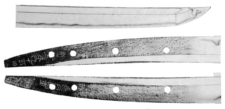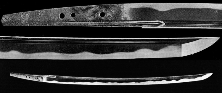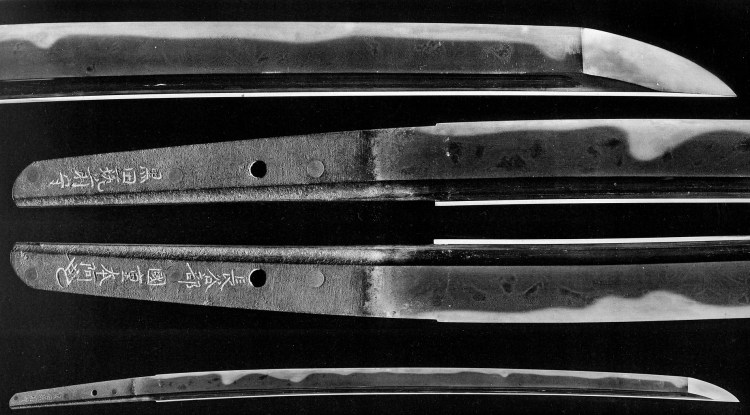 Picture 2: tachi, mei: “Hasebe Kunishige” (長谷部国重) – “Jôwa gonen tsuchinoto-ushi jûgatsu hi” (貞和五年己丑十月日, “a day in the tenth month of Jôwa five [1349], year of the ox”), nagasa 71.2 cm, shinogi-zukuri, iori-mune