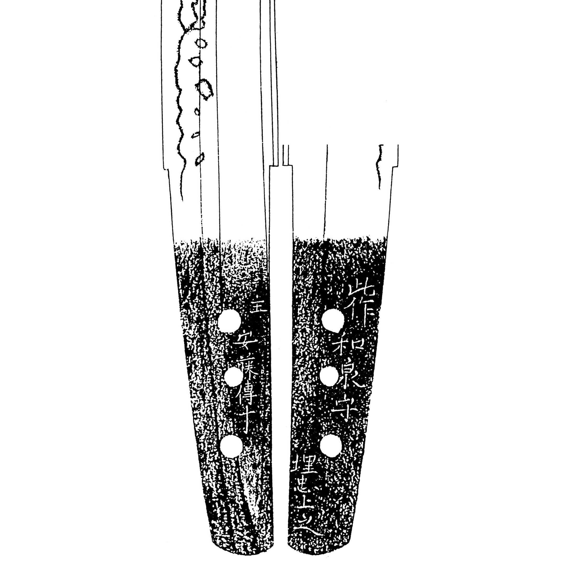 ↑ Jūyō-bijutsuhin, tachi, signed: “Yukimasa Heiji gannen hachigatsu futsuka – Kuniyasu” (行正平治元年八月二日・国安) – “Yukimasa, on the second day in the eighth month of Heiji one (1159) – Kuniyasu (presumably the then owner of the sword).”