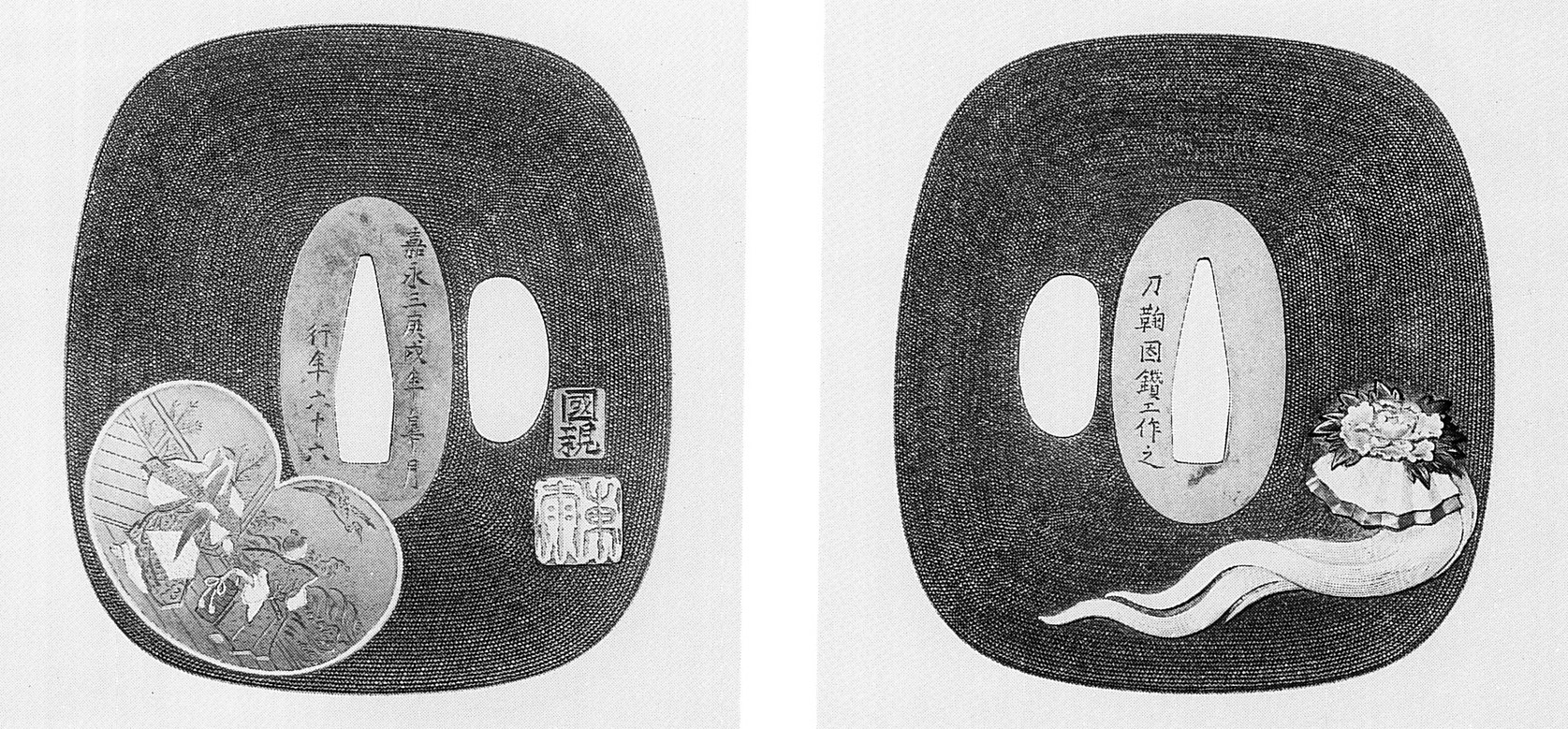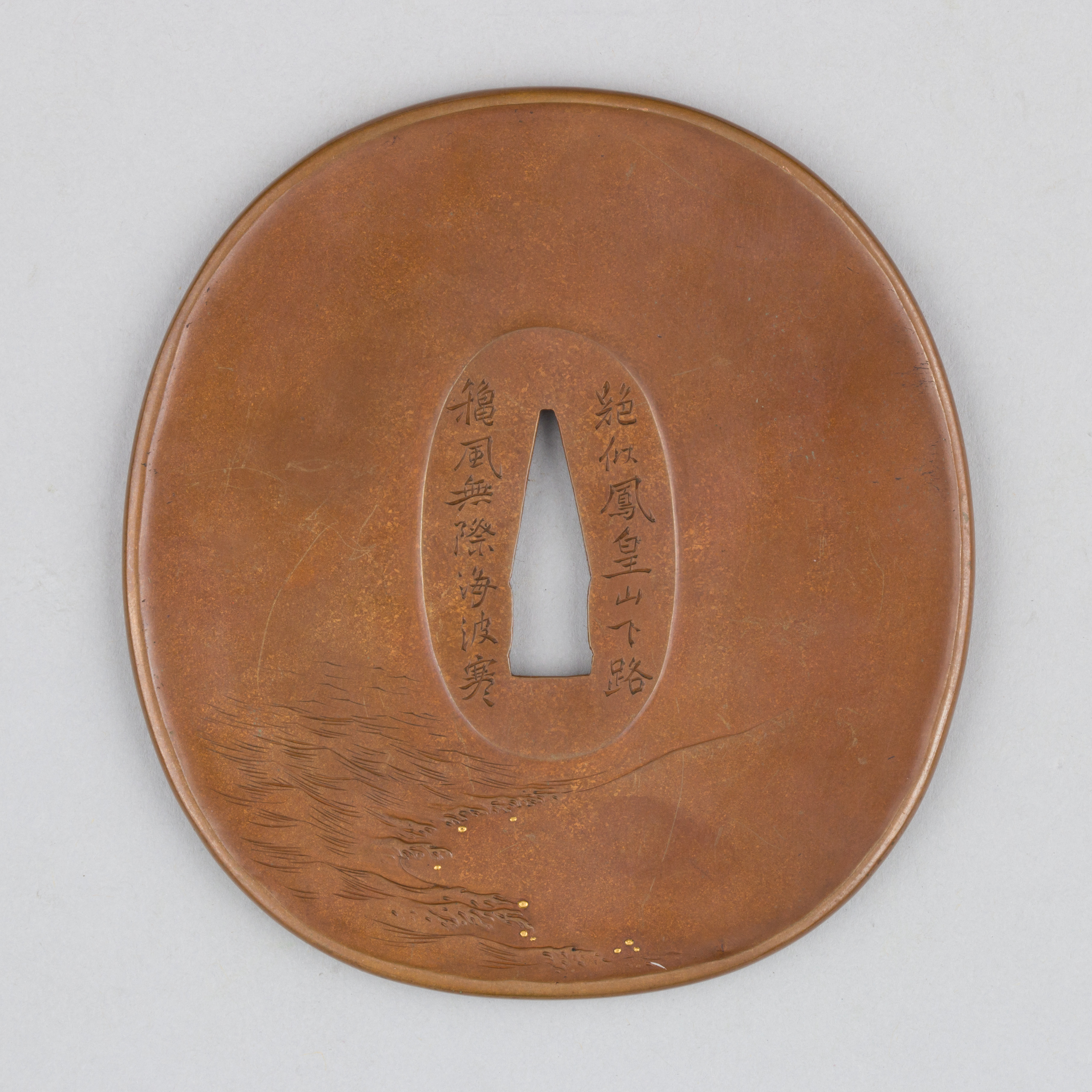 Now, the continued lack of significant numbers of Nagato swordsmiths during the Edo period might be explained by the background of its rulers, the Mōri (毛利) family. Due to their allegiance to Toyotomi Hideyoshi, Tokugawa Ieyasu transferred them from their lands in Aki province to Nagato once he had won Sekigahara, which came with a significant decrease of annual income. In a nutshell, the Tokugawa remained suspicious about the Mōri, ranking them tozama daimyō (外様大名, lit. “outside daimyō), and the Mōri held a grudge against the Tokugawa until the end of the Edo period. Accordingly, and despite the fact that military infrastructure already greatly suffered in Nagato due to the decreased income, it is safe to assume that the Tokugawa did not want to see a major weapons production site operating down there. However, the Mōri boosted local tsuba production, resulting in a myriad of makers and works, referred to as Chōshū-tsuba (長州鐔, named after the Chōshū fief that the Mōri were ruling) that reached every nook and cranny of Japan.