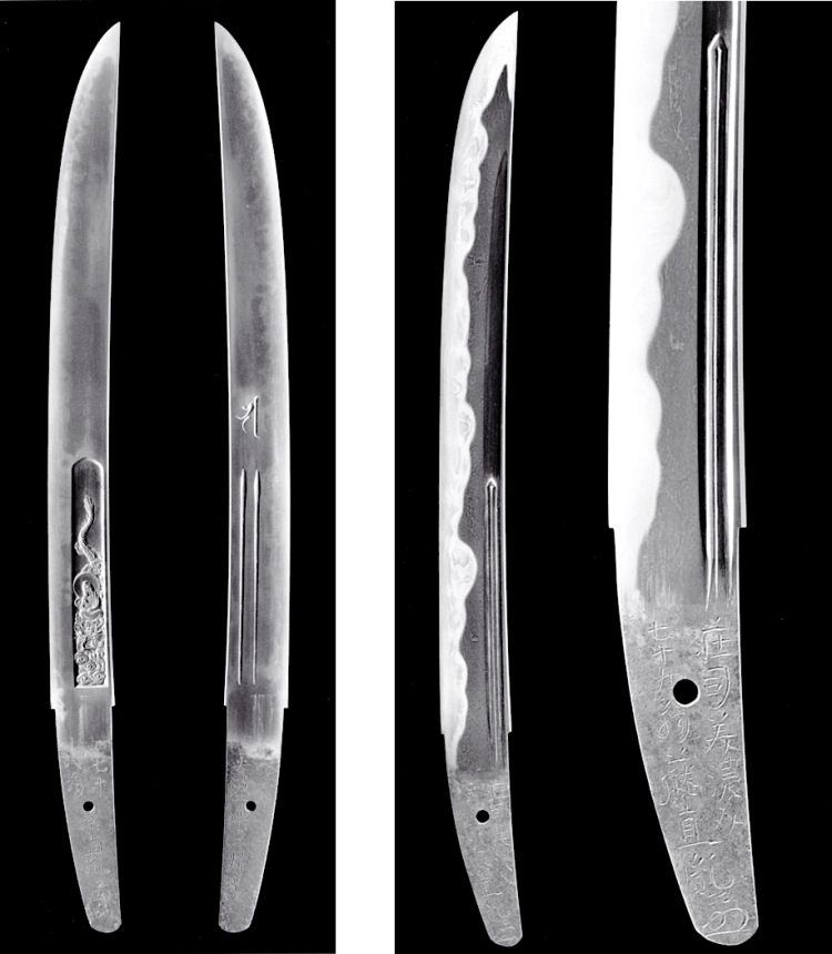 Wakizashi signed: Chōshū Haruakira saku – Ōan yonen sangatsu hi (長州治剣作・応安二二年三月日) – “Made by Haruakira from Nagato on a day in the third month of Ōan four (1371).”