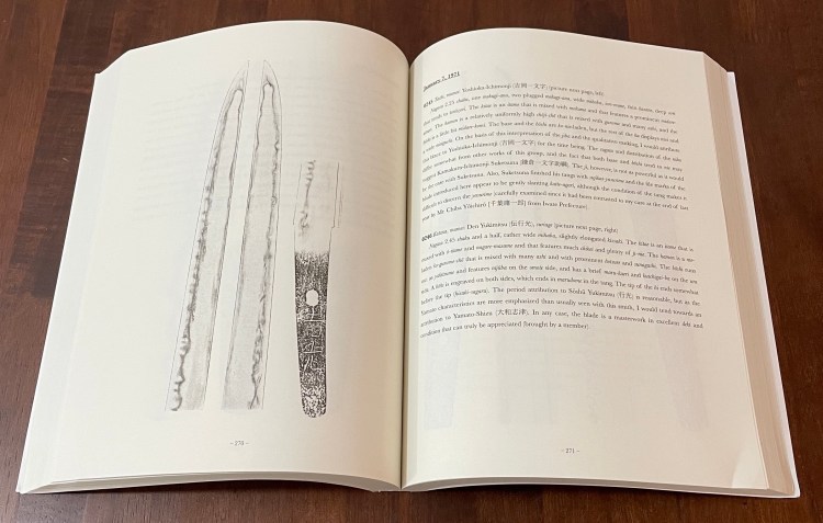 In about 480 (letter format, paperback) pages, Volume 1, which covers the years from 1969 to 1971, introduces roughly 400 blades, of which many are accompanied by oshigata drawings. Price for Volume 1 arrives at $129.00, which includes shipping.