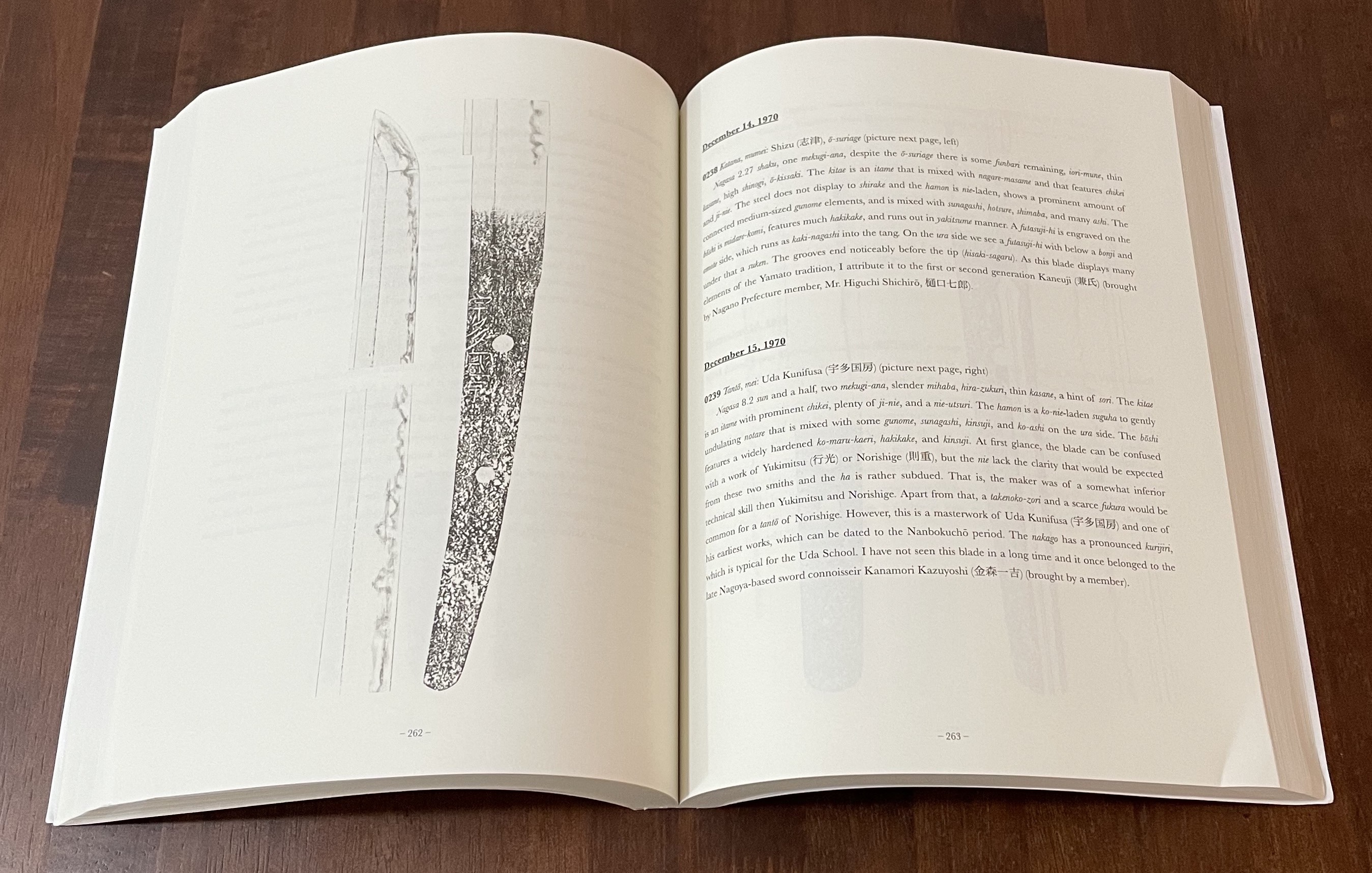 In about 480 (letter format, paperback) pages, Volume 1, which covers the years from 1969 to 1971, introduces roughly 400 blades, of which many are accompanied by oshigata drawings. Price for Volume 1 arrives at $129.00, which includes shipping.